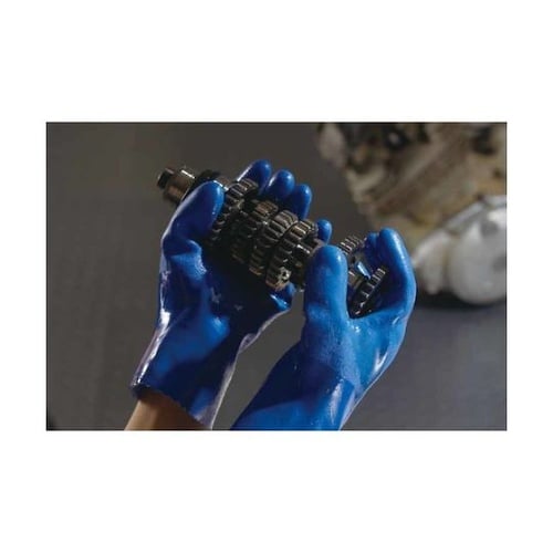3重コーティングで耐久性に優れています。ガソリン、切削油などを使用する作業ですぐれた耐油性を発揮します。独自の特殊すべり止め加工を施し、濡れた状態でも高いすべり止め効果を発揮します。手によくなじみ、耐 |