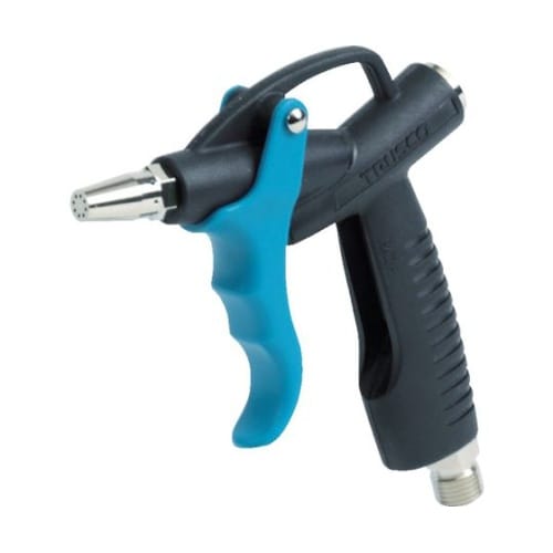 空気量を拡大し、サイドから跳ね返り防止のエアカーテンを形成します。レバー操作のみで流量の強弱が可能です。一般ダスト作業。機械の洗浄、乾燥。 |