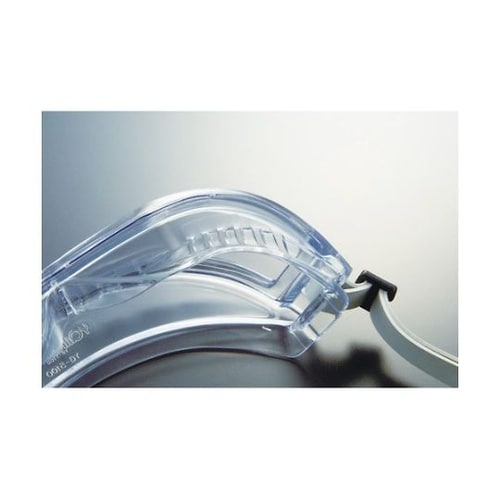 ワイドビュータイプで左右が見えやすいゴーグルです。粉塵が付着しにくいゴムベルトタイプです。 |