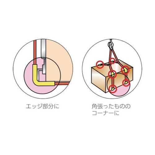 マジックテープRで取り外し可能なので任意の位置にすぐ装着できます。角張った荷物を吊り上げる時のベルトスリングの保護に。 |