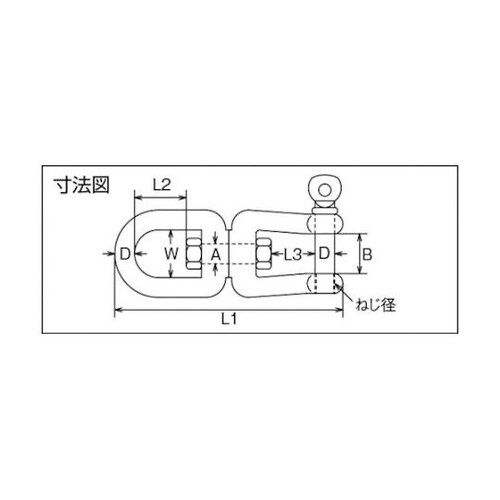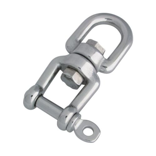 回転するのでねじれを取り除きます。片方のアイはシャックル形式です。ピンを開閉することで簡単にチェーンなどが取り付けできます。チェーンなどのよりとりに。チェーン・ワイヤ・ロープなどの連結金具として。 |