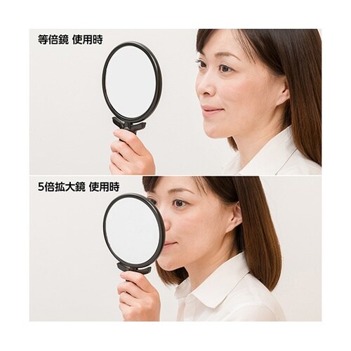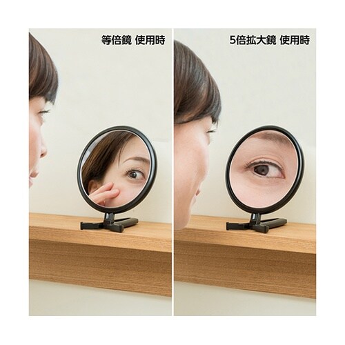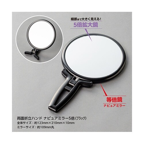 等倍・5倍拡大両面折立ハンドナピュアミラー ブラック RH−05BK