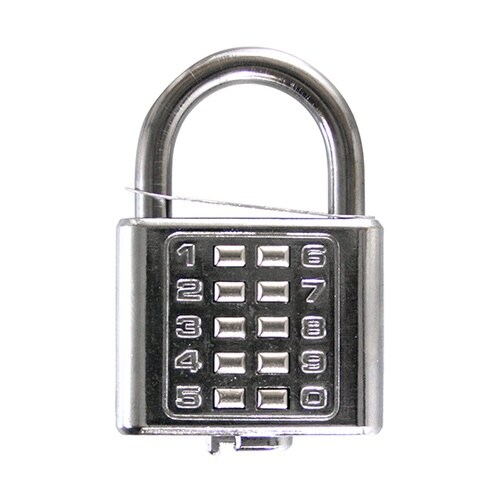 プッシュボタンの式南京錠です。番号は、固定式で変更できません。 |