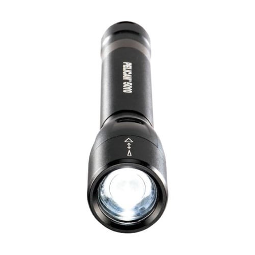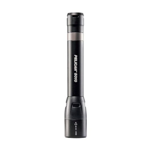 ハイ・ロー・フラッシュの3モードを搭載しています。レンズ部のスリーブをスライドさせる事で照射角度の調整が可能です。プッシュボタンスイッチ部にバッテリー残量表示ランプがあります。 |