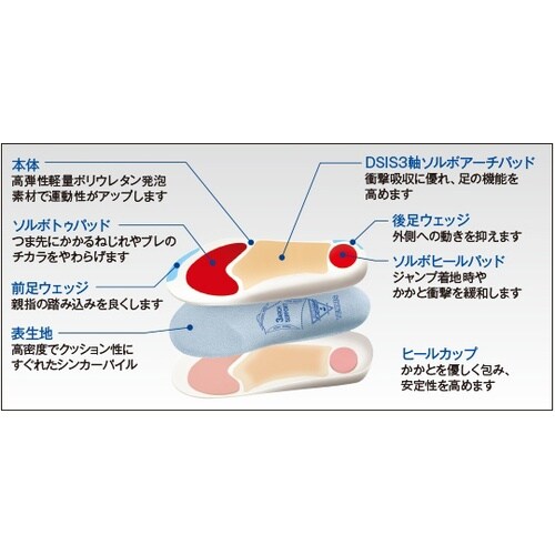 急な方向転換、ダッシュ&ストップ時の衝撃吸収・動作バランスを整え、足のトラブルを軽減し瞬発力もアップ。高密度で短いパイル長により、靴ずれなどを軽減するとともに、クッション性、吸湿、吸汗性に優れ、ソフト |