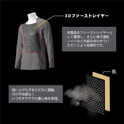 長袖タイプ優れた吸汗速乾性と抜群の軽量性ストレッチ性抗菌防臭加工立体メッシュ様々なスポーツで活躍。 |