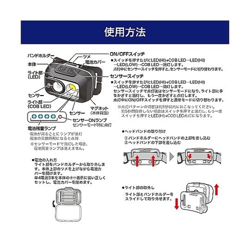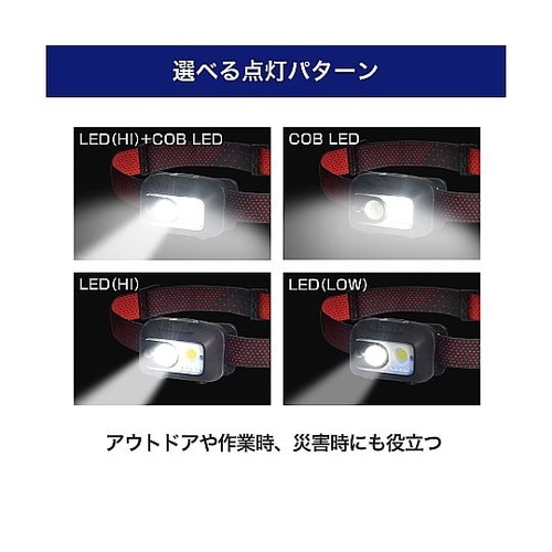 点灯パターンが選べるのでアウトドアや作業時、災害時にも役立つ雨の中でも使える防沫形(IPX4)COB切替可能で近くも遠くも明るく照らせる手を触れずにON/OFFできる非接触式センサースイッチ搭載急な電 |