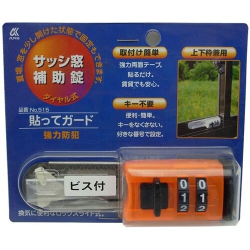 サッシ窓の補助錠です。サッシ窓に簡単に取り付けられるダイヤル式の補助錠です。強力両面テープにより簡単に取付ができます。好きな番号をセットできるダイヤル錠タイプなのでカギの紛失・保管の必要がありません。 |