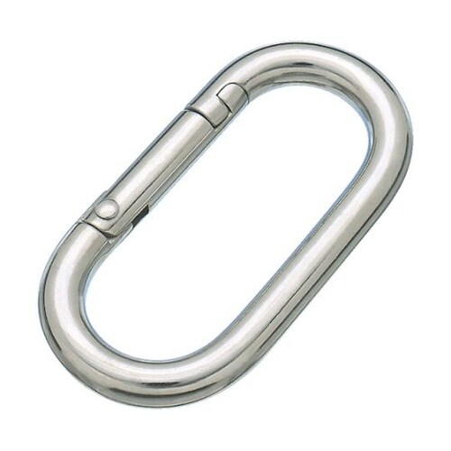 スプリングフックです。バネの力で開口部分が戻ります。チェーンなどの端末に取り付け、ジョイント金具として。 |
