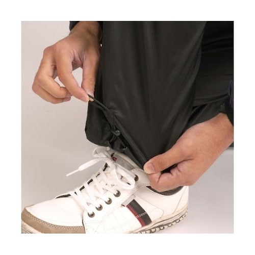 ストレッチ素材を採用しているため脚の曲げ伸ばしが楽に行えます。泥や風、汚れから体をガードします。撥水加工を施しています。着脱が楽な前開きタイプです。裾のゴムひもを絞る事で汚れを防ぎ、バタつき感を軽減し