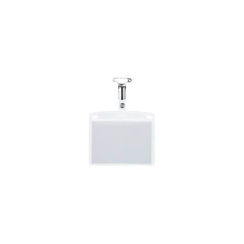 表面特殊加工で名札表面に傷などが付きにくくなっています。金属クリップ(両用)です。非転写でトナーやインキも転写しにくくなっています。カードは上から出し入れするタイプのスタンダード仕様。ソフト素材パスケ |