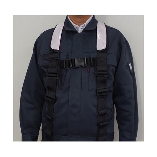ハーネスにマジックテープで簡単着脱できます。裏面は蒸れにくいメッシュ生地を採用しています。視認性が向上します。高所作業の安全確保に