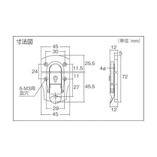 アズワン パッチン錠 鍵付タイプ・スチール製 (2個入) L−12 A04G-9556