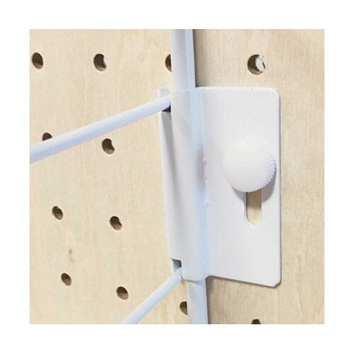 「和気産業 穴あきボード」と「和気産業 メッシュ棚受」を固定するための専用パーツです。人がぶらさがったりすると危険ですので、絶対にしないでください。危険物、重量品、こわれやすい物は掛けないでください。 |