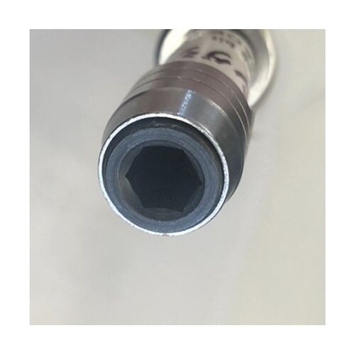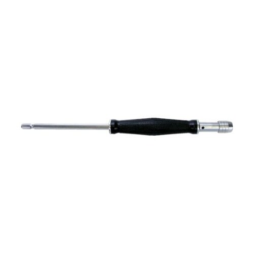 手の届かない高所や狭くて手が入らない箇所での作業に適しています。Tバーハンドルや充電インパクトドライバーに接続できます。ビットが落ちない落下防止付ワンタッチチャック方式です。安定用ハンドルが付いている |