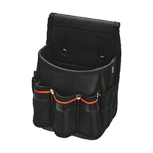 汚れが目立ちにくいブラックを基調としたデザインです。合皮を使用しており、高級感を兼ね備えた腰袋です。開きやすく形状がくずれやすい部分を補強しています。3段のため収納力が大きく、一度に多くの工具を持ち運 |