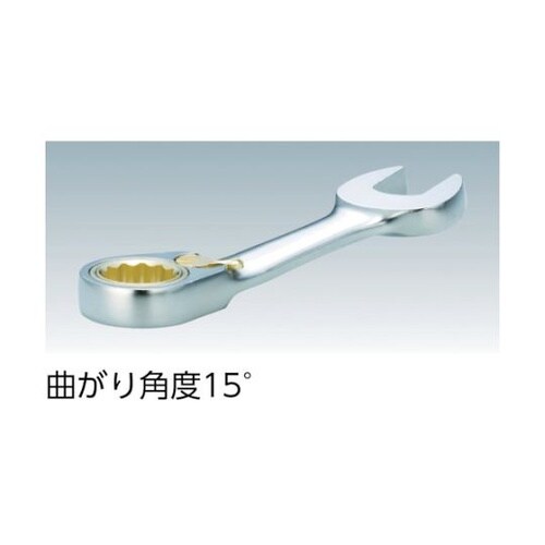 切替爪を左右に動かすことで正逆の切替が行えます。ラチェットレンチの柄部は曲がり角度15°と小さいので高さ制限を受ける箇所の作業に適しています。送り角度5°を実現しました。仕上面は美しく、肌触りがよく重 |