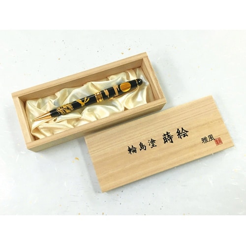 六百年の伝統を持つ輪島塗蒔絵を施した高級筆記具本製品は完成されるまでに100−130以上もの工程を経て、伝統的な手法で丁寧に作られています。ボールペン本体の材質は、天然木の「木地」が使われております。 |