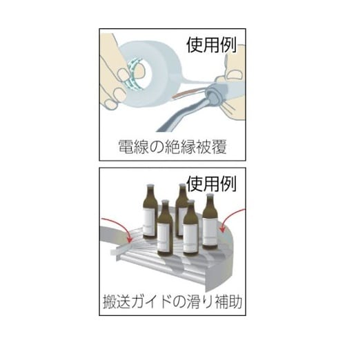 耐熱性・非粘着性・高電気絶縁性・耐薬品性・滑り性に優れています。各種コイル・モーター、ハーネスの耐熱結束。シュート、ホッパーの摩擦面ライニング。製品搬送ラインでの傷付き防止に。耐薬マスキングに。 |