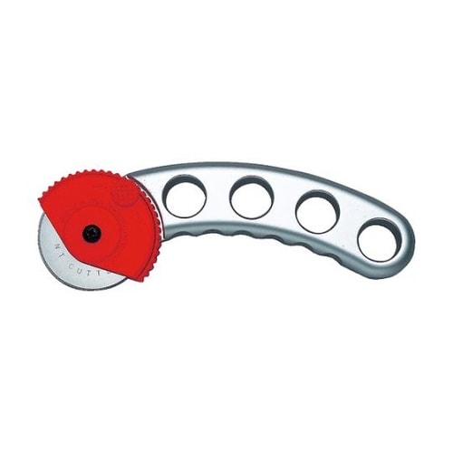 丸刃を転がして布を切るローリングタイプです。直径45mmの特大刃仕様アルミダイカスト製ワンタッチで開閉可能なプロテクター付き。布、革、ゴムシートなどの切断に。 |