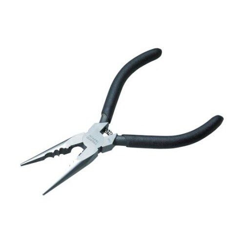 先端が強靭で折れずに曲がらず切れ味に優れています。従来のラジオペンチの機能を損なわず、コードの割り込み切り、簡易圧着、線材の皮むき、小ねじやナットなどをくわえ、回す、など幅広くご使用いただける万能工具 |