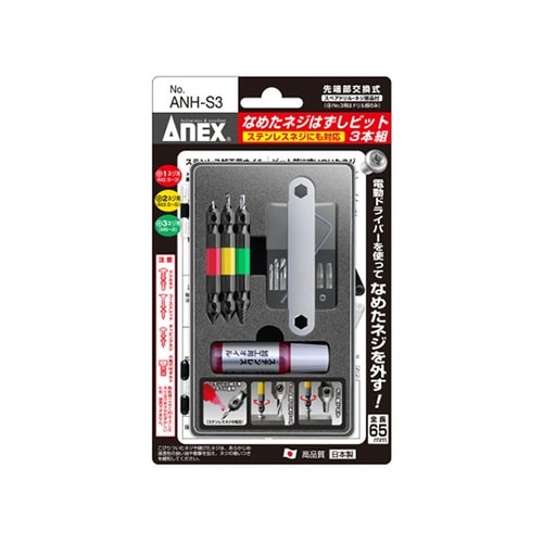 なめたネジはずしビット 3本組 ステンレスねじにも対応+1ネジ用(M2.5―M3)、+2ネジ用(M3.5―M5)、+3ネジ用(M6―M8) ANH−S3