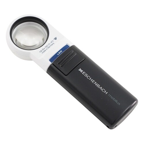 LEDライト付きで鮮やかに拡大。ゆがみの少ない非球面レンズ(エッシェンバッハ独自開発PXM光学樹脂レンズ)で傷が付きにくく、明るく拡大します。輝度調節キャップをライト部分にはめ込んでまぶしさを調節でき |
