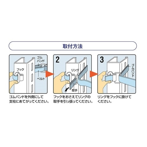 メタルラック、Lアングル、Cチャンネルへの取り付けに最適です。支柱にゴムバンドを巻き付けフックを引っ掛けるだけの簡単取り付けです。取り出し簡単、高さ調節自在です。書類・荷物に合わせて高さを調節できます