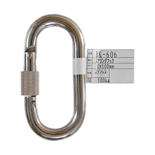 開口部を押さえ、ロープ類をほかの金具と接続する連結金具です。スプリングの力で開口部は戻るようになっています。建築や土木などさまざまなシーンで使用されています。犬などペット用には使用できません安全のため |