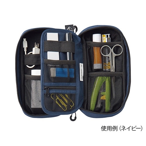デジタルガジェットや文具小物の収容に便利な見開きタイプ。パソコン周りの充電器やケーブルをひとまとめに!テレワークにオススメ!