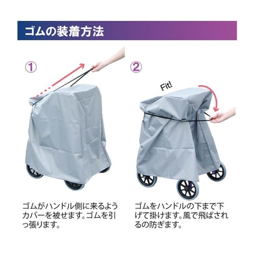 さまざまな歩行車・シルバーカーに対応できる汎用性のあるカバー。雨やほこりから歩行車・シルバーカーを守ります。カサの生地と縫い方を採用しています。風飛び防止用に、操作性の良いフィットゴム付きです。丈が長 |
