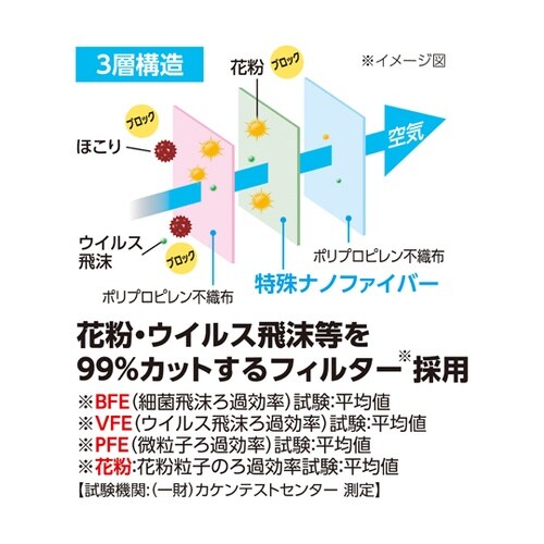 特殊ナノファイバー加工のフィルター(中間層)を使用した国産マスクが大容量の30枚入りで登場です特殊ナノファイバー加工の中間層が着用時の口元温度上昇を緩和し、蒸れによる不快感を軽減します花粉・ウイルス飛 |