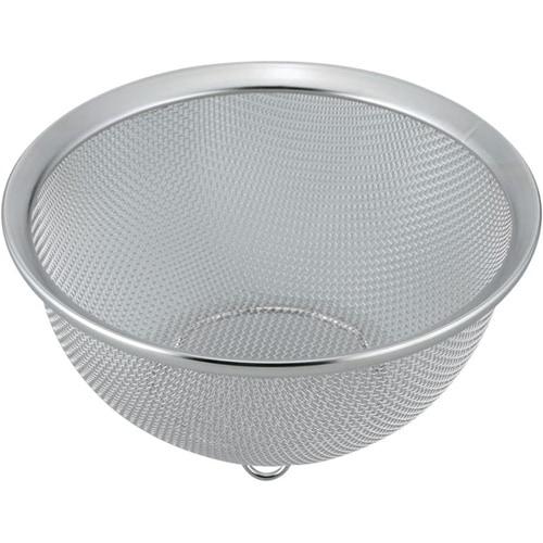 網目が大きく水キレが良い。丈夫な日本製のざる。水には表面張力があるため、水キレが良くなるように網目を大きく作ってある。0.5mmの線材を使用することで、網目を大きくしても丈夫でハリのあるざるに仕上がっ |