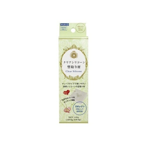 チューブタイプで使いやすい透明シリコーンの型取り材です。約24時間で自然硬化し、高精度な型取りが可能です。硬化後の強度も強く、透明なのでUVレジンの型として使用出来ます。 |