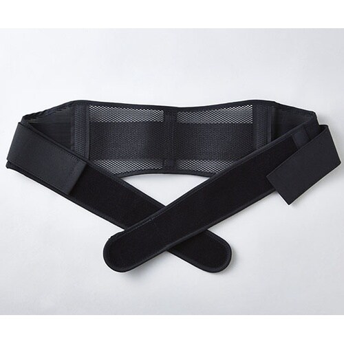服の下に着けても目立ちにくく、外出時などにオススメ。サイドと背面全体にメッシュ生地を使用し、全体的に通気性を高めました。2本のベルトにより、締まり具合を簡単に調節できます。6cm幅ベルトが締めるべき位 |