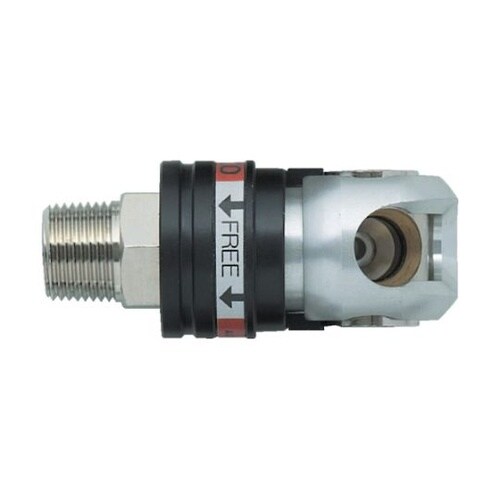 接続は無圧状態で行えるため女性や不慣れな方にでも安全です。分離時は残圧が自動的に抜けて、反動や不快音も軽減されます。一般カップリングに接続できます。(一部を除く)エア流量の損失がなく、エア工具の能力を |