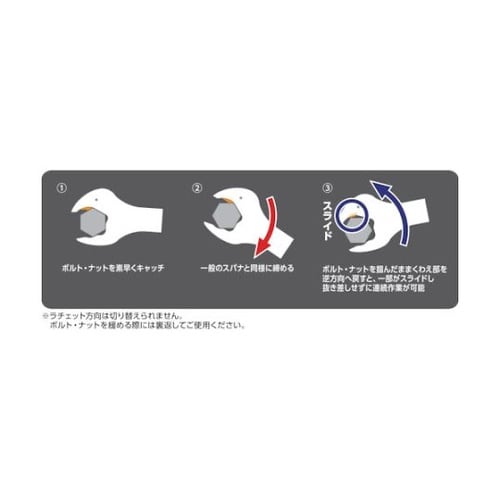 正逆の切り替えは付いていません。スパナ部・めがね部ともに抜差し不要で早回し操作が可能です。ストレート形状ですので狭い場所や奥まった場所での作業に適しています。送り角度5°を実現しました。仕上面は美しく |