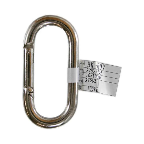 開口部を押さえ、ロープ類をほかの金具と接続する連結金具です。スプリングの力で開口部は戻るようになっています。建築や土木などさまざまなシーンで使用されています。犬などペット用には使用できません安全のため |