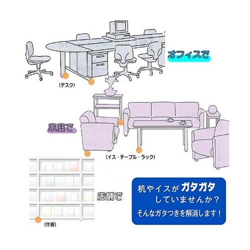 丈夫なフェルトで、床面のキズを防止!!移動時の振動音を減少します。机や椅子のガタつき解消や調整用に
