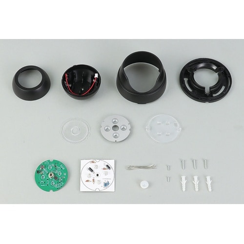 回路設計も学べる人感センサーライト防犯カメラ型で人感センサー搭載(3−5m、120°の広範囲で人の動きを検知できます)超高輝度白LED4灯点灯時間を4段階に調整可能 抵抗器の接続の仕方を変えることで、 |