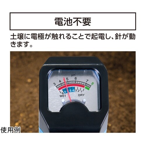 土に挿すだけで簡単に測定できます。 |