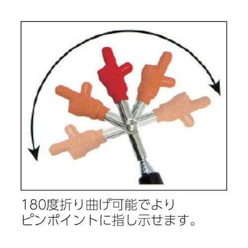 ゆび部が曲がりポイント指しに便利です。180度折り曲げ可能でよりピンポイントに指し示せます。現場撮影時のポイント指示に。 |