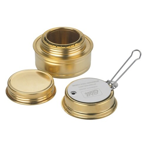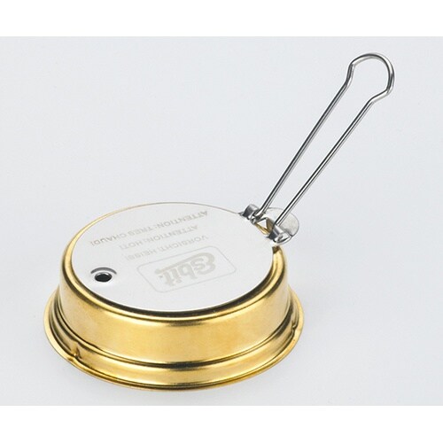 真鍮製のアルコールバーナーです。タンクには約100mLの燃料が入りますが、2/3の70mLが適量です。70mLで約25分間燃焼します。25mL程度の燃料で500mLの水が約8分30秒で沸騰します。トッ |