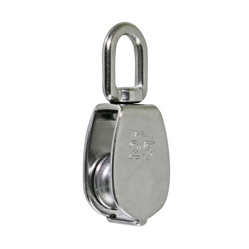 ロープを通して、荷物の吊下げや引っ張る作業に使います。アイの部分が回転するので、ロープのより戻しができます。ステンレス製なので、防錆性・耐候性に優れ丈夫で長持ち。屋外・海岸での使用に最適! |