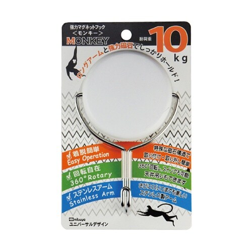 強力マグネットフック モンキー10kg 白 M30422 MKY−10−WH