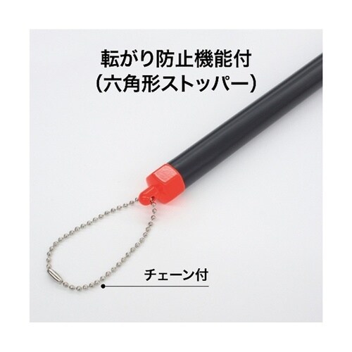 先端は見やすい蛍光色です。転がらない六角形、吊り下げに便利なチェーン付です。 |
