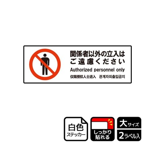 関係者以外の立ち入りを丁寧な表現で警告する禁止標識サインステッカー。 |