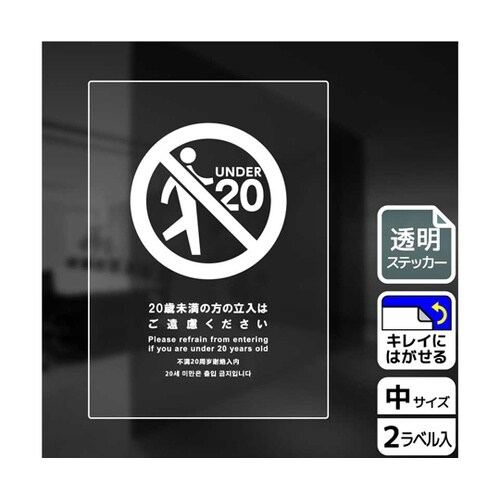 透明ステッカー 20歳未満立入不可 2ラ