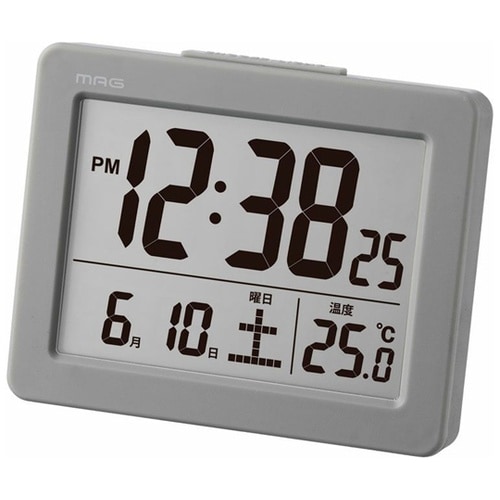 ベッドサイドや棚など限られたスペースにも設置しやすいコンパクトサイズのデジタル目覚まし時計です。コンパクトながら表示部分は大きく視認性の高いデザインです。カレンダー、温度表示付きで多機能仕様。アラーム |