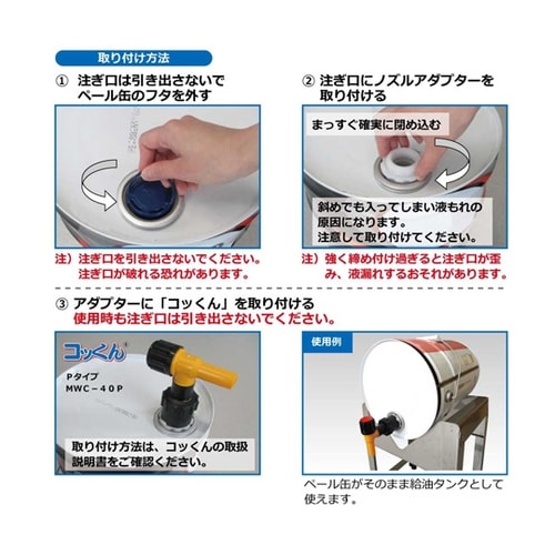 モービルなどの樹脂引き出し口付ペール缶が給油タンクとして使えます。 |
